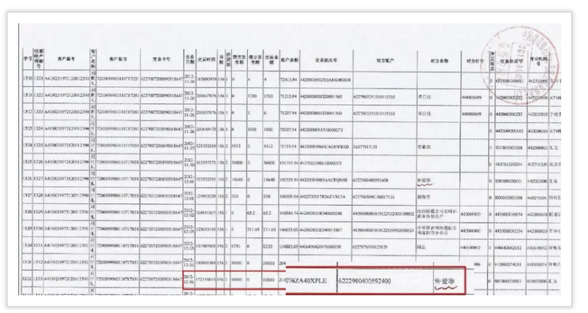 許愛(ài)珍銀行轉(zhuǎn)賬記錄